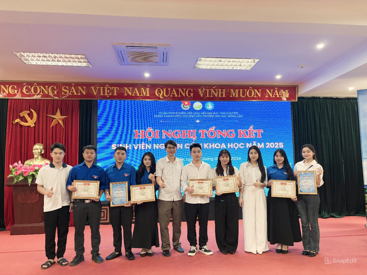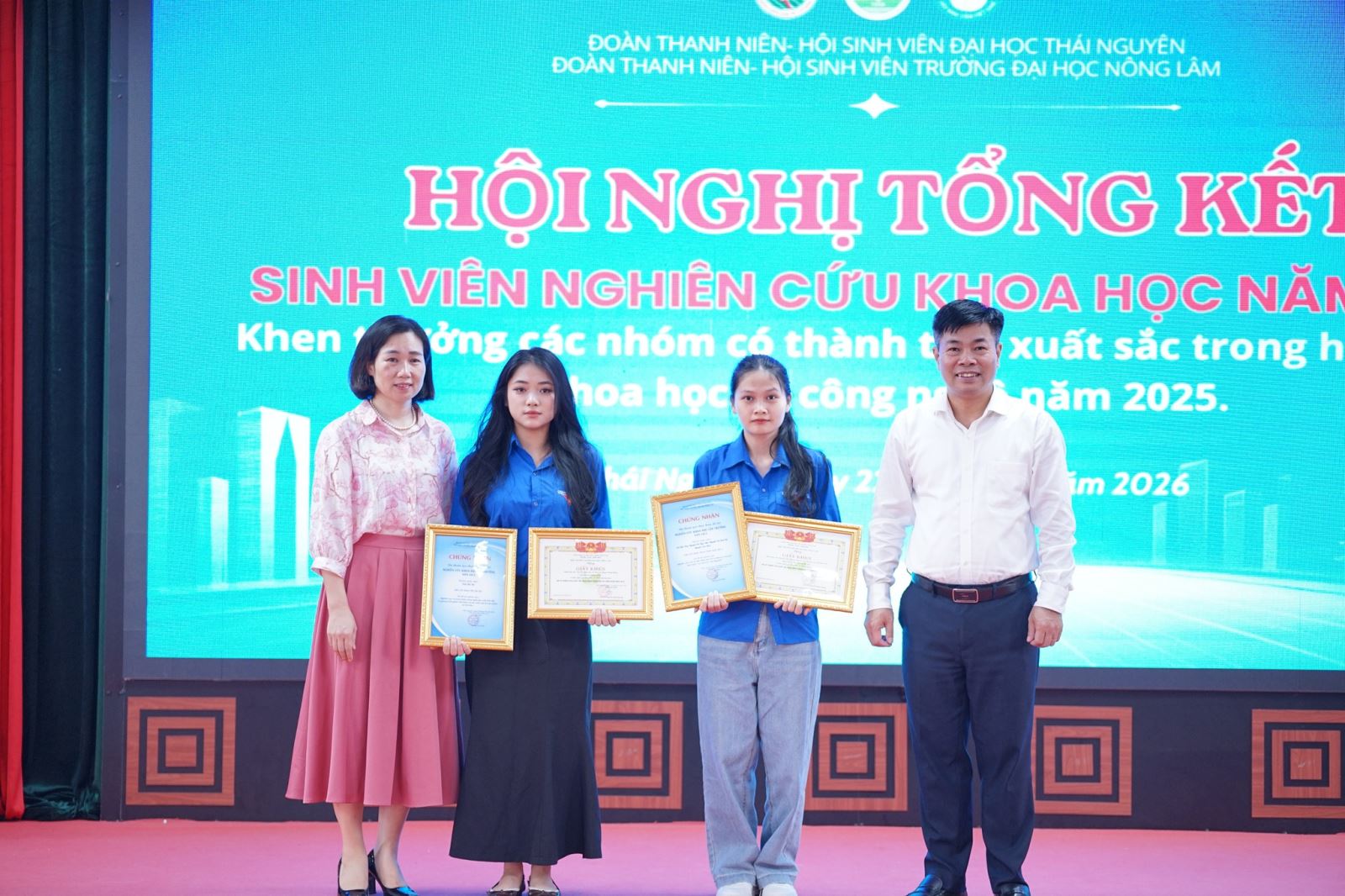 Ngày 22/4/2026, Trường Đại học Nông Lâm – Đại học Thái Nguyên (TUAF) đã tổ chức thành công Hội nghị Sinh viên nghiên cứu khoa học năm 2026. Sự kiện được tổ chức nhằm tổng kết, đánh giá các hoạt động nghiên cứu khoa học của sinh viên trong năm 2025, đồng thời thảo luận và đề ra phương hướng, nhiệm vụ trọng tâm cho năm 2026.